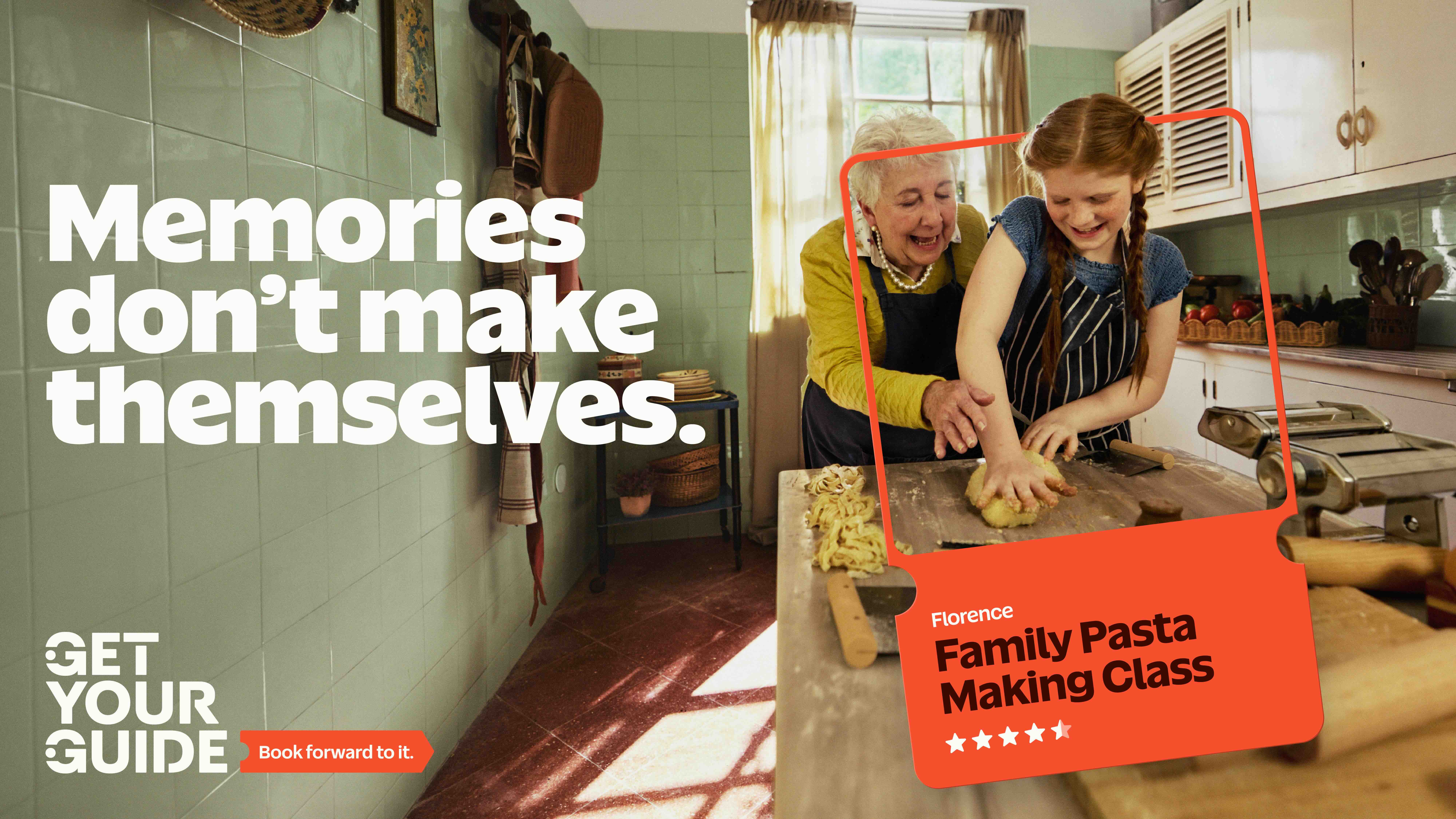 Central to the work are four hero films capturing real travelers, families and friends — not actors. A solo explorer on a street food crawl through Mexico, a family in a flour-dusted Italian kitchen, a couple having what can only be described as "jamón sweats" on a private yacht off the coast of Spain, and two friends finally getting an answer to all their questions while stargazing off the beaten path. Each ends in the same place with the GetYourGuide app, a booking being made, and the understanding that what just happened started right there.